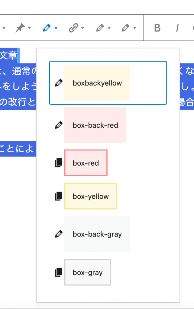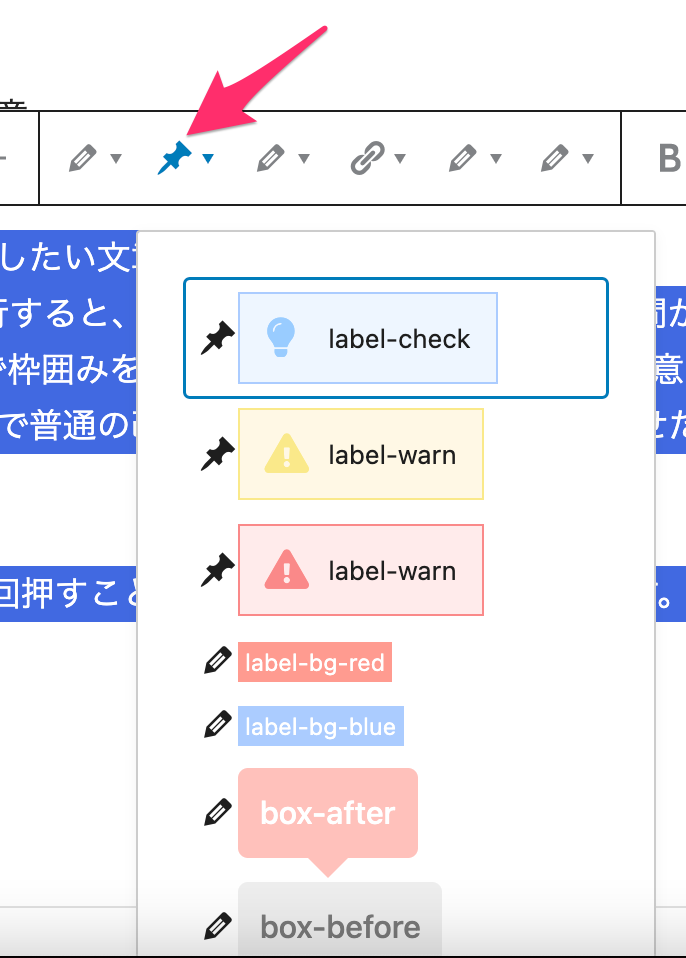 そして、ピンか鉛筆のアイコン、どちらかをクリックすると、枠囲みの装飾ができます。